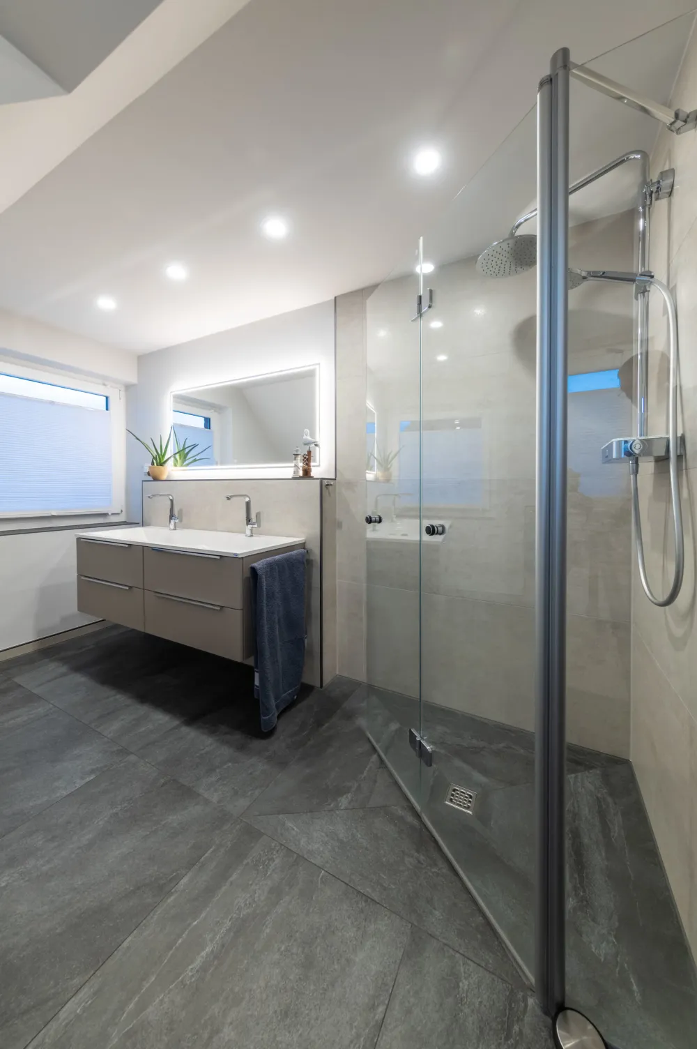 Unser Ziel ist es, Ihre Wünsche zu erfüllen, selbst wenn dies für uns eine kleinere Gewinnspanne bedeutet. Wir scheuen keine Herausforderung, auch nicht bei Bädern im Obergeschoss.